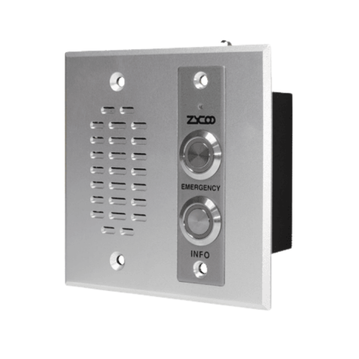 The ZYCOO VI Series offers the most rugged solutions for network communication. The Zycoo VI-D05 is a specialized dual-button, vandal-proof IP intercom designed for environments requiring multiple call destinations.